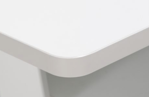 데스크의 전면 코너는 부드러운 곡선 형태로 마감되어 시각적인 안정감을 주며 편안하고 안전한 환경을 제공합니다.